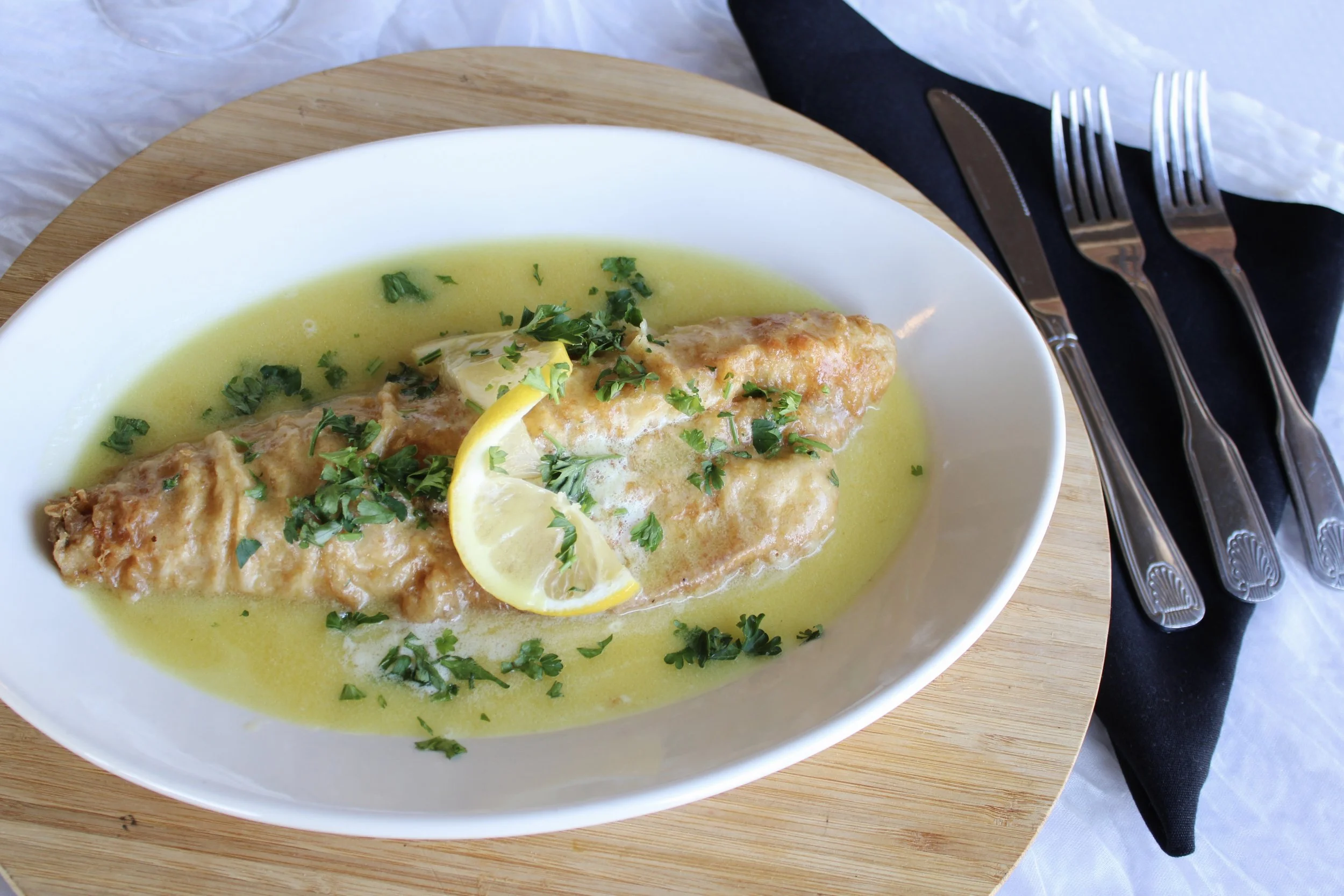 WALLEYE FRANCAISE - Lightly floured walleye, sauteed in a lemon butter wine sauce.