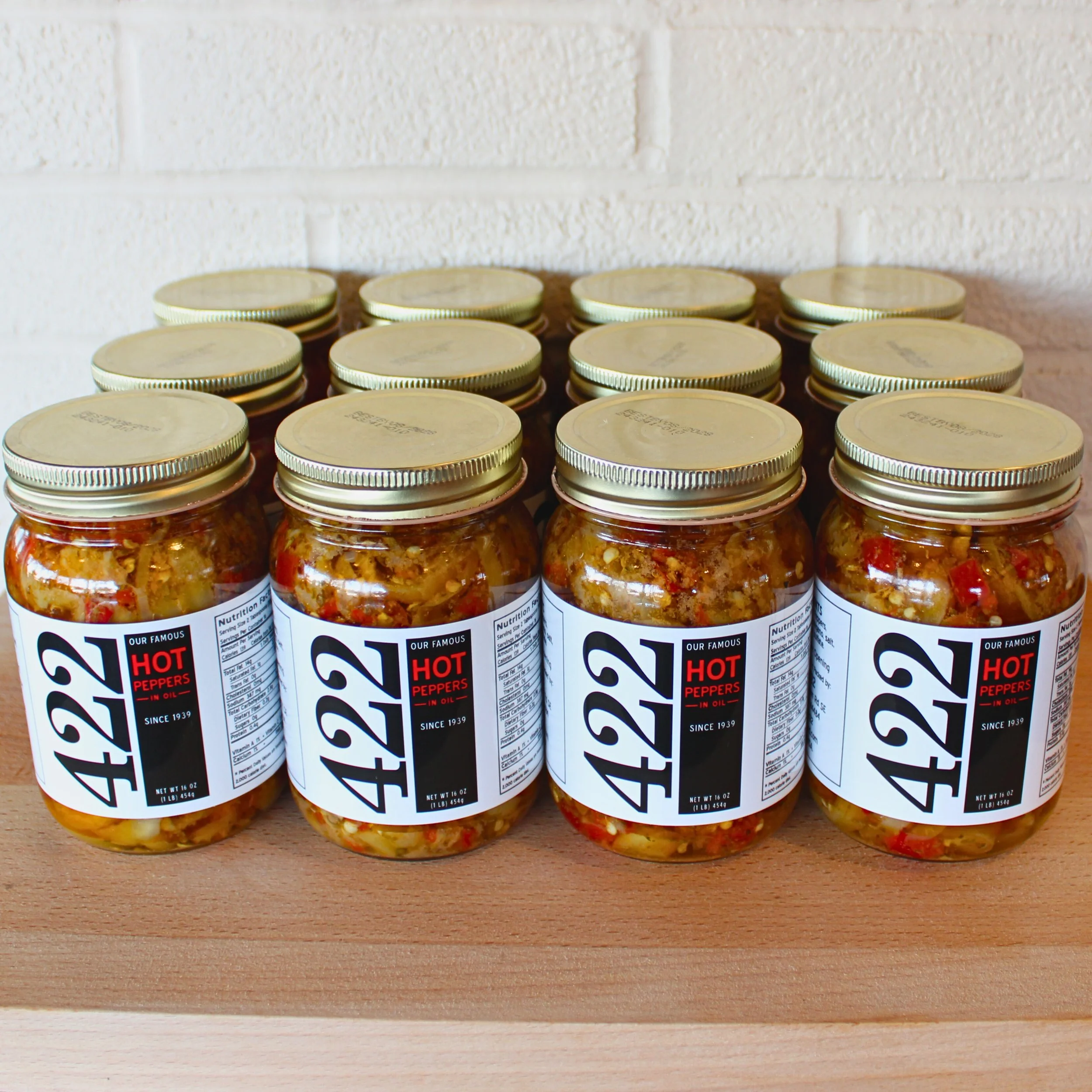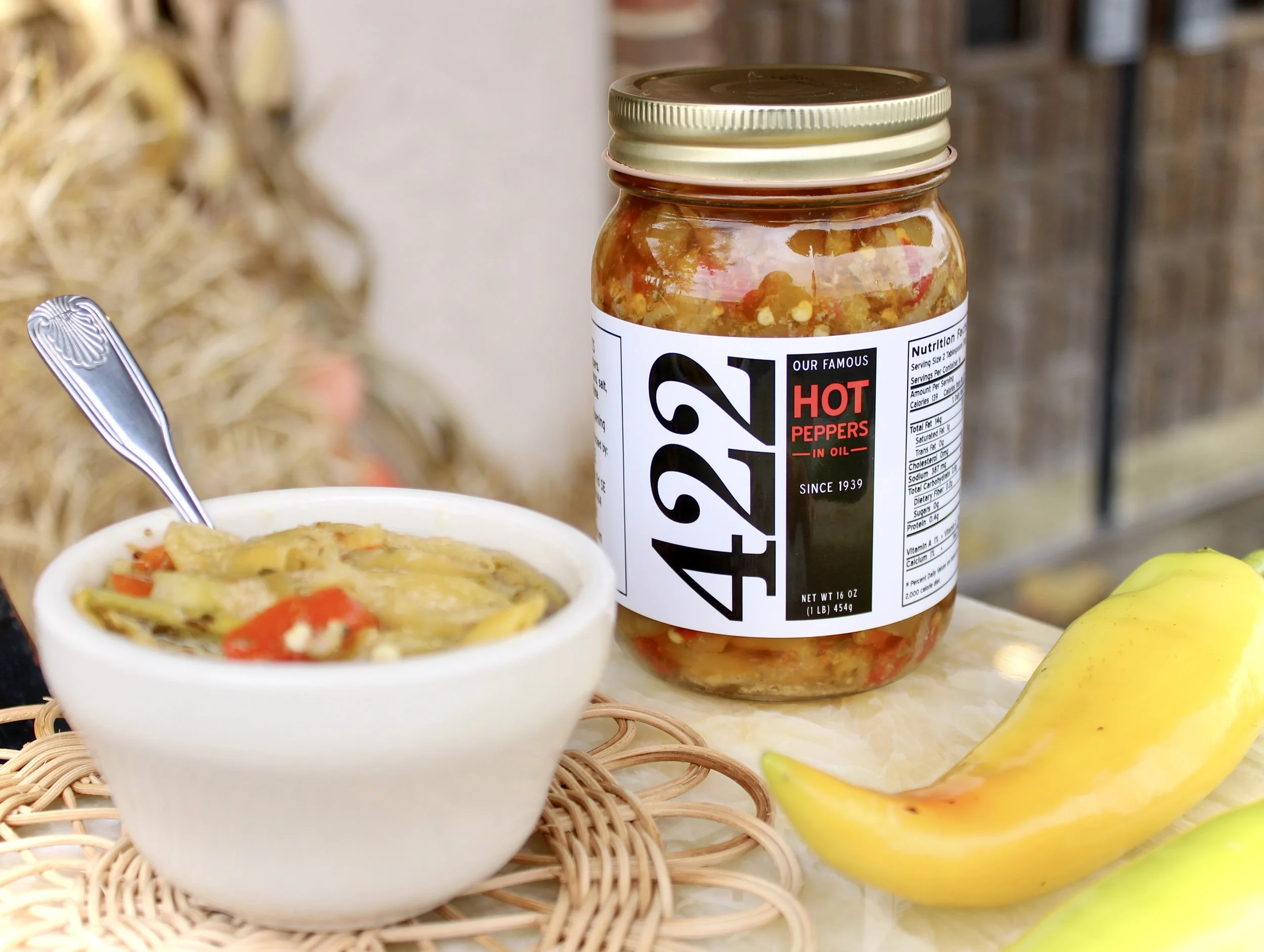Café 422’s Famous Hot Peppers in Oil have been a beloved staple since the beginning, known for their bold, traditionally spicey flavor that adds a kick on top of homemade bread, pizza, grilled meats, burgers, salads, pasta, and so much more! Handcrafted in Warren, Ohio, these signature peppers are a testament to Café 422’s long-standing commitment to homemade quality and flavor. They’ve developed a loyal following that stretches far beyond the Mahoning Valley. Over the years, these flavorful peppers have earned fans among celebrities and public figures alike including Sonny Bono, who famously had them shipped to his California home, as well as Tony Bennett, John Glenn, and Ricardo Montalban.