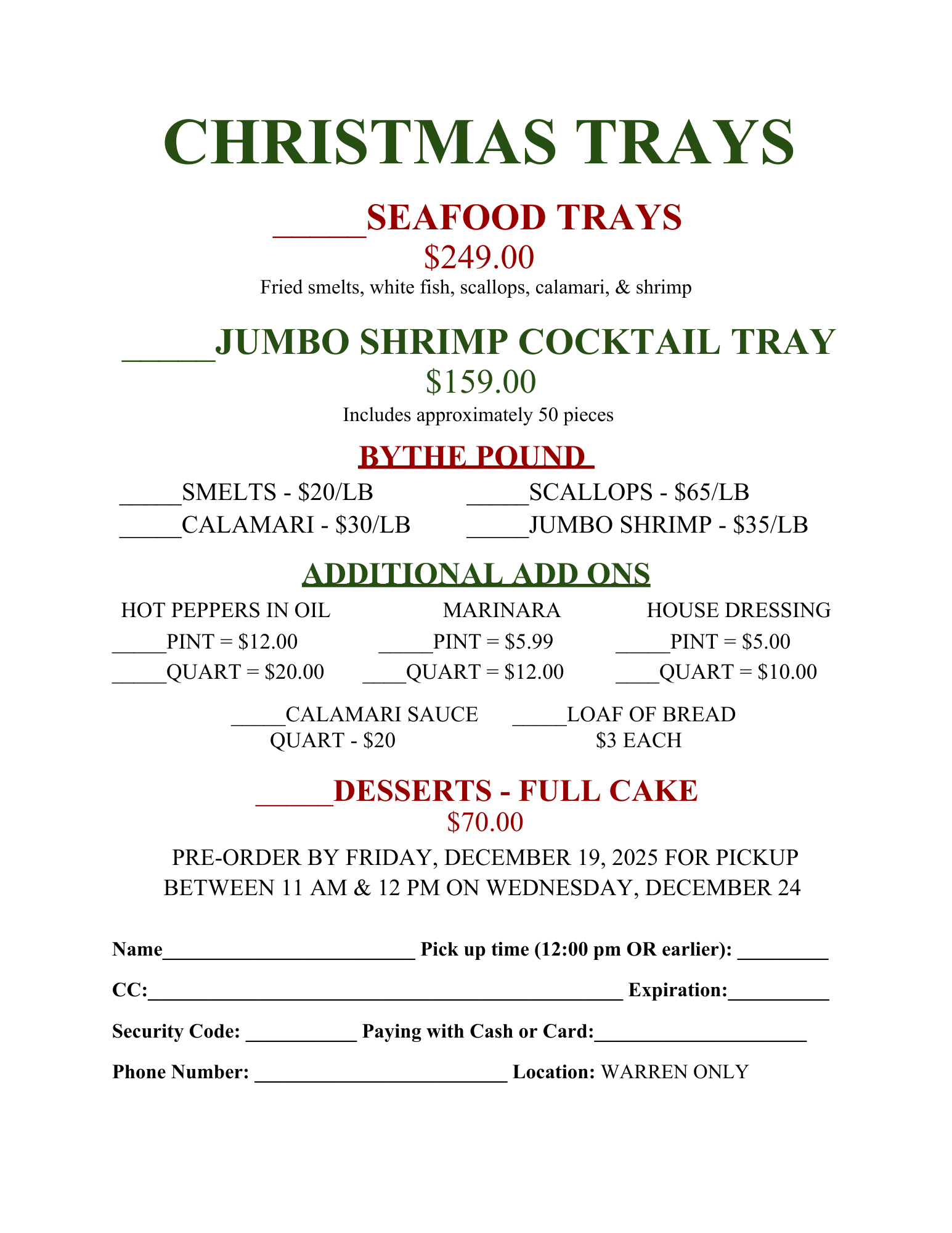 Call or Visit us in Person to Place your Order. ORDERS CLOSE 12/19/25.