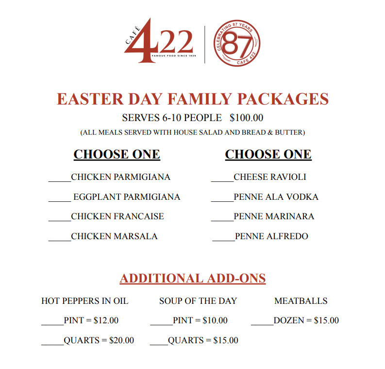 2026 Easter Menu